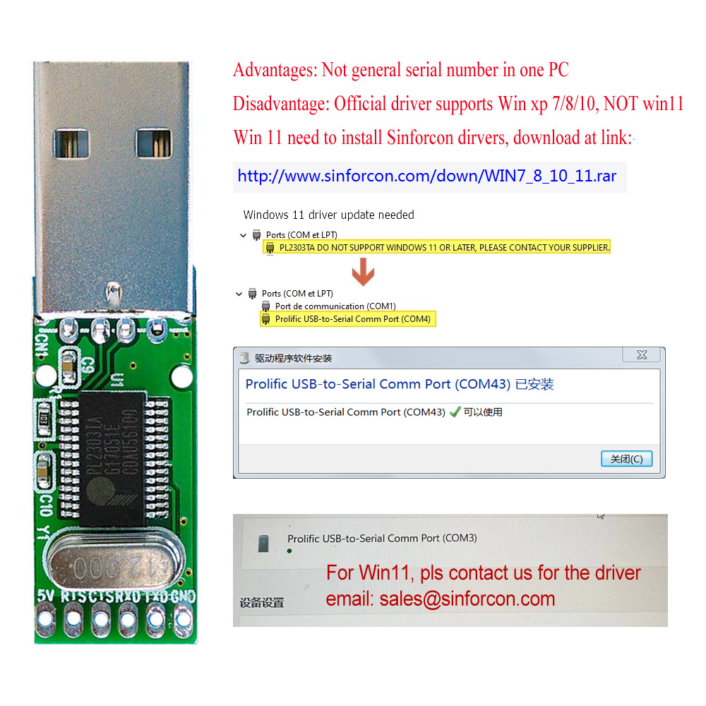 Prolific PL2303 USB RS232 PCB USB-COM Adapter Converter Programmer Com Tester Tools Kits