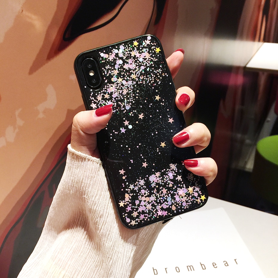 Qianliyao Simple Transparent Bling Glitter Stars Circle Soft Cover For Samsung S11 S10 S9 S8 plus S7edge Note 8 9 10 pro Case